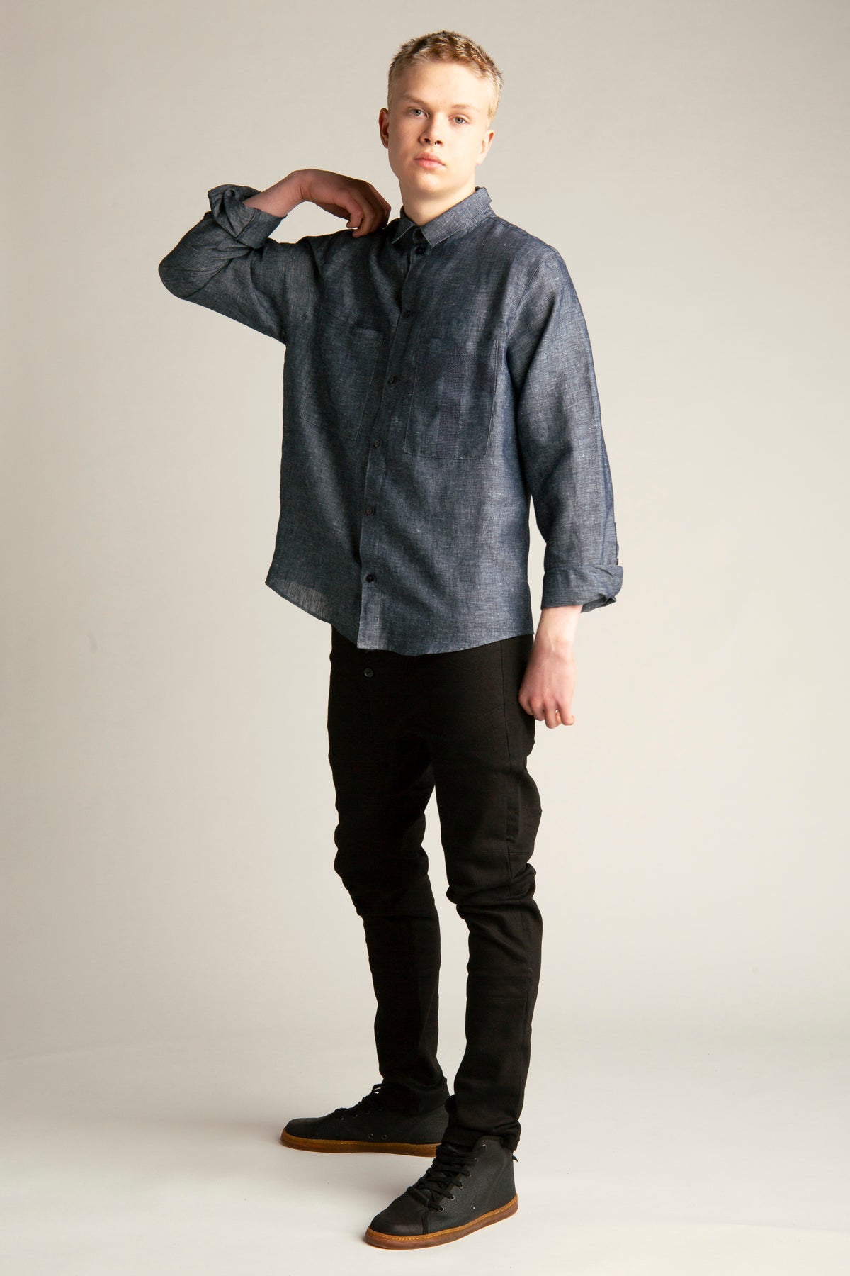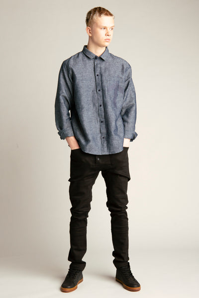 Long sleeve cotton-linen blend shirt with 2 chest pockets.